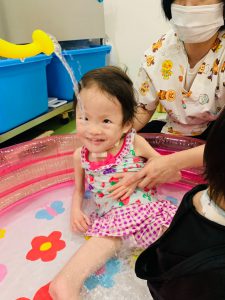 2人とも足をたくさん動かし、水と遊ぶことができましたね。